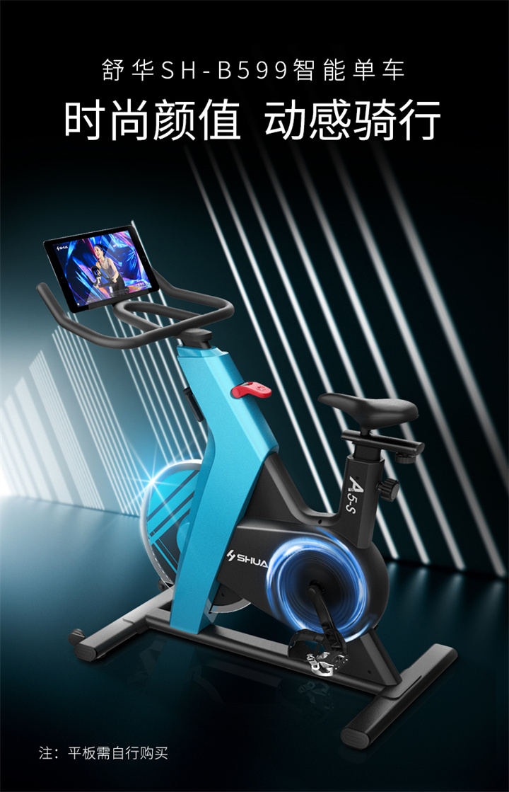 AG庄闲推荐健身器材-舒华动感单车SH-B599采用三角形车架搭配工字底座的稳定结构设计,骑行更稳定,承重可达125kg,手动磁控阻力设计,骑行时无物理摩擦,更顺畅静音,同时无需插电,使用更便捷。13kg磁控飞轮,足量均质,保障骑行时的惯性力及动平衡,骑行劲爽。